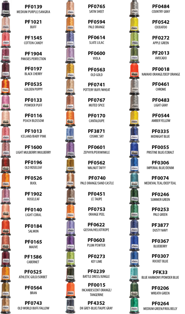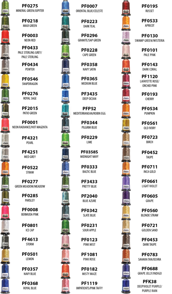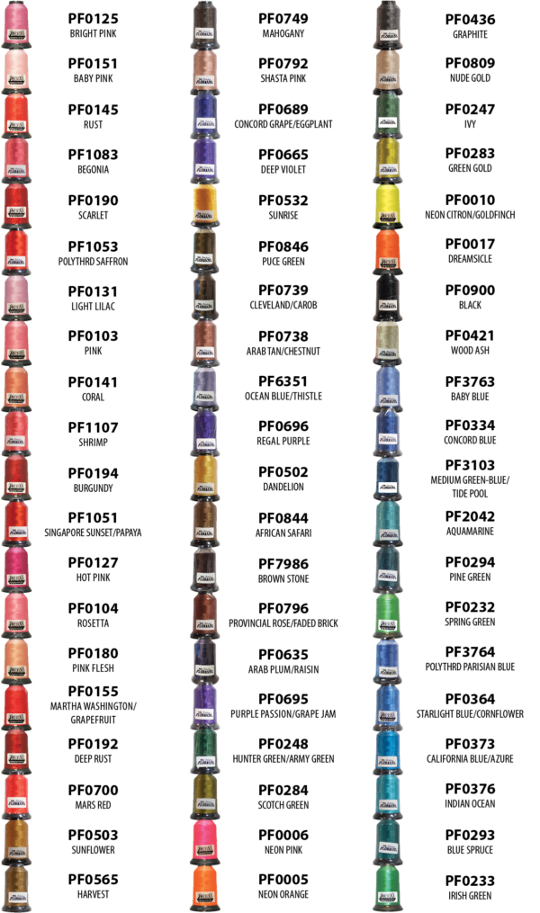 5000 Meter spool of Floriani polyester embroidery thread. This 40-weight thread is highly durable and color-fast. The thread is resistant to damage from sunlight, saltwater, and bleach. With a high tensile strength, the thread can withstand the higher speeds of the top-of-the-line embroidery machines without shredding. The high sheen will make every embroidery project shine with luster and brilliance, adding a depth of color that is irresistible!