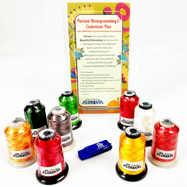 • Floriani Monogramming & Customizer Plus Embroidery Software included, featuring 44 Fonts, 5 Multi-Colored Alphabets, Floriani Design Finder & more!