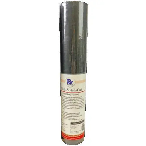 Stick-Stitch-Cut is RNK’s solution for embellishing and embroidering on challenging fabrics such as sweater knit, stretch velour/velvet, leather, pleather, vinyl, ultra-suede and more. Use this needle-friendly, sticky cutaway to secure hard-to-hoop items within the embroidery frame. Ideal for items or fabrics that could be damaged by the hooping process.